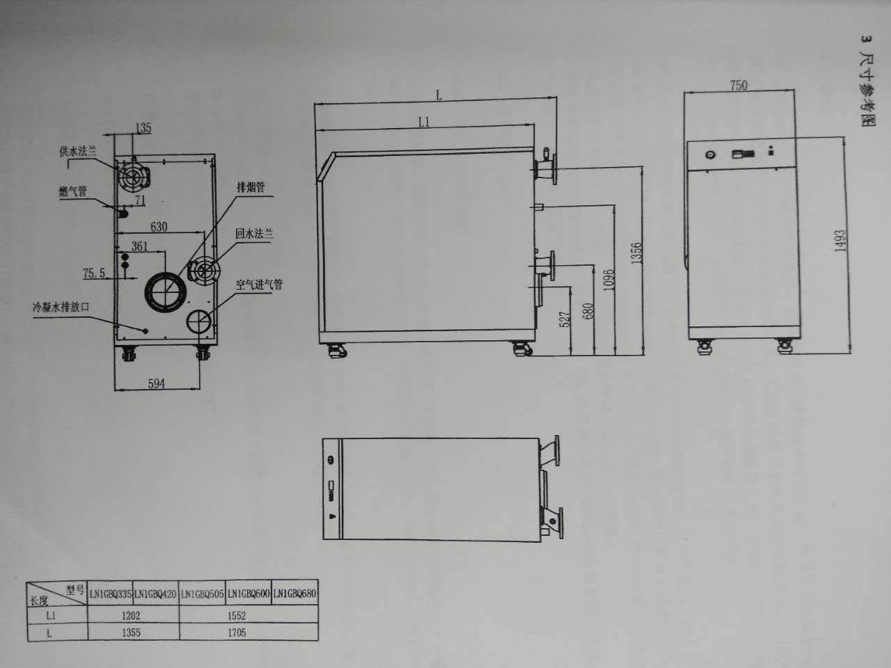 额定热输入 kW 335 420 505 600 700
